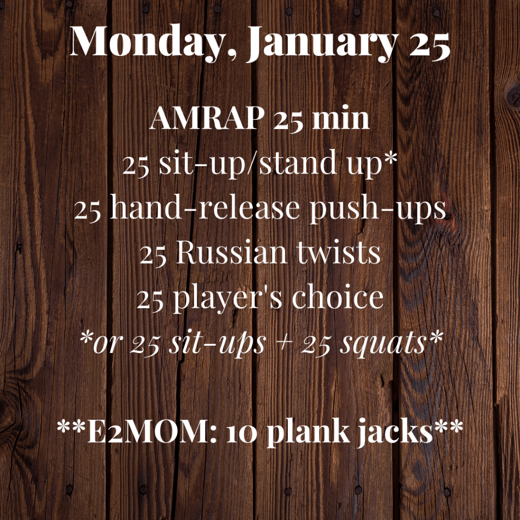 At-home WOD: Monday, January 25 Posted bySteph VermeychukJanuary 25, 2021January 24, 2021Posted inWorkout of the Day Start your week off right with this AMRAP. Post rounds + reps to comments. Share this: Click to share on X (Opens in new window) X Click to share on Facebook (Opens in new window) Facebook Like Loading... Related