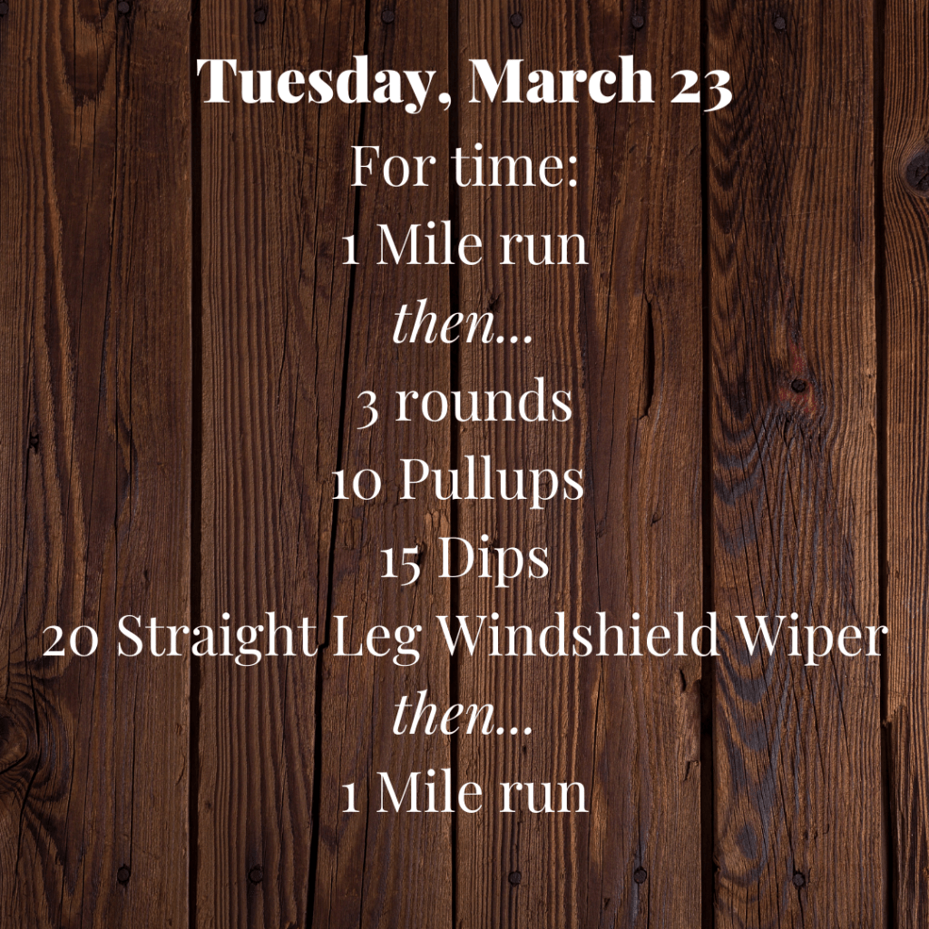 Tuesday, March 23 Posted bySteph VermeychukMarch 23, 2021March 22, 2021Posted inWorkout of the Day Share this: Click to share on X (Opens in new window) X Click to share on Facebook (Opens in new window) Facebook Like Loading... Related