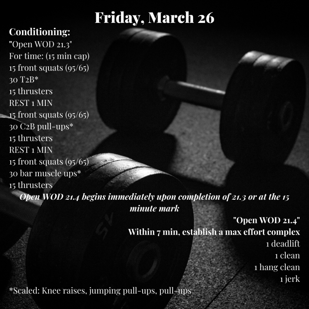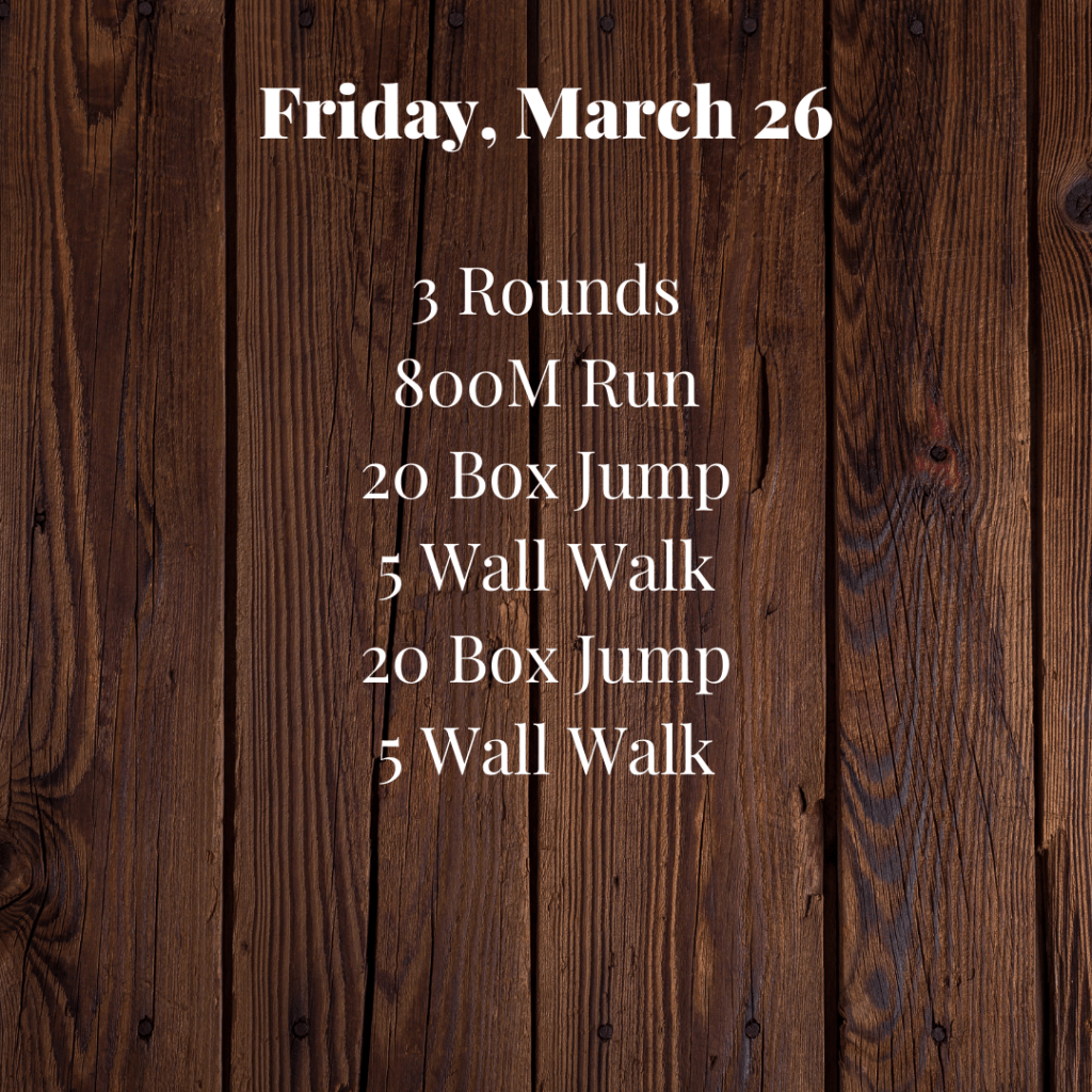 Friday, March 26 Posted bySteph VermeychukMarch 26, 2021March 25, 2021Posted inWorkout of the Day Share this: Click to share on X (Opens in new window) X Click to share on Facebook (Opens in new window) Facebook Like Loading... Related
