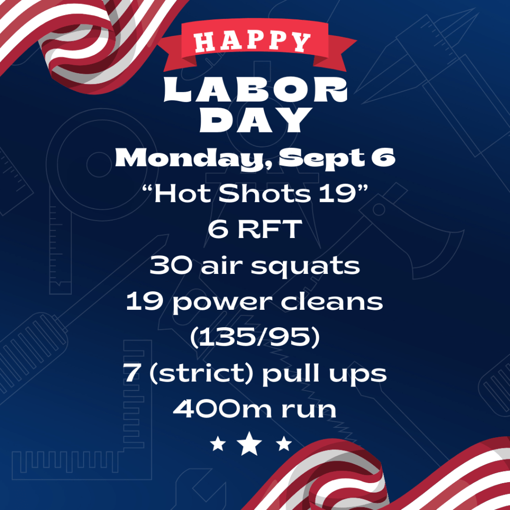 This Labor Day, we are doing the Hero WOD, “Hotshots 19.” This WOD is in honor of 19 members of the Granite Mountain Hotshots firefighting team who tragically lost their lives on June 30, 2013, while fighting a fire in Yarnell, Arizona.