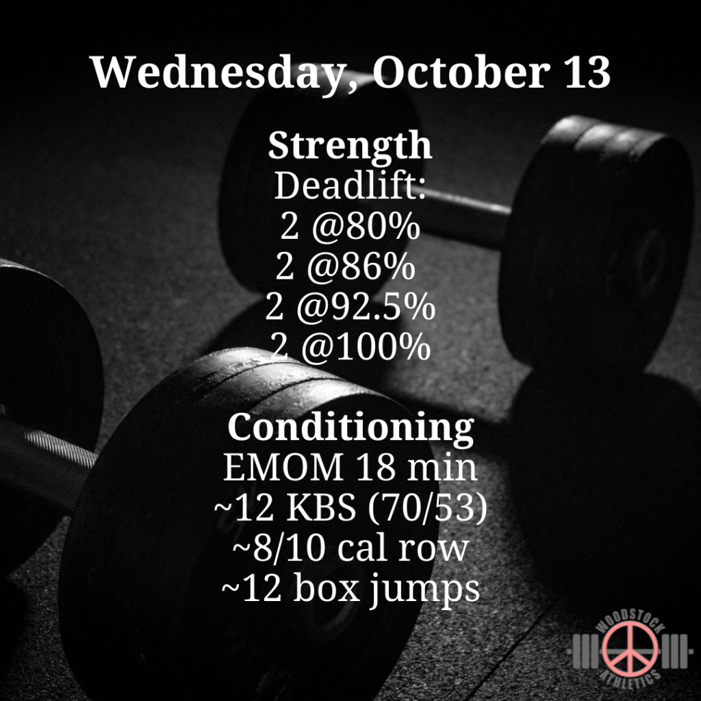 WOD: Wednesday, October 13 Posted bySteph VermeychukOctober 13, 2021October 11, 2021Posted inWorkout of the Day Deadlift day. Are you getting stronger? Share this: Click to share on X (Opens in new window) X Click to share on Facebook (Opens in new window) Facebook Like Loading... Related
