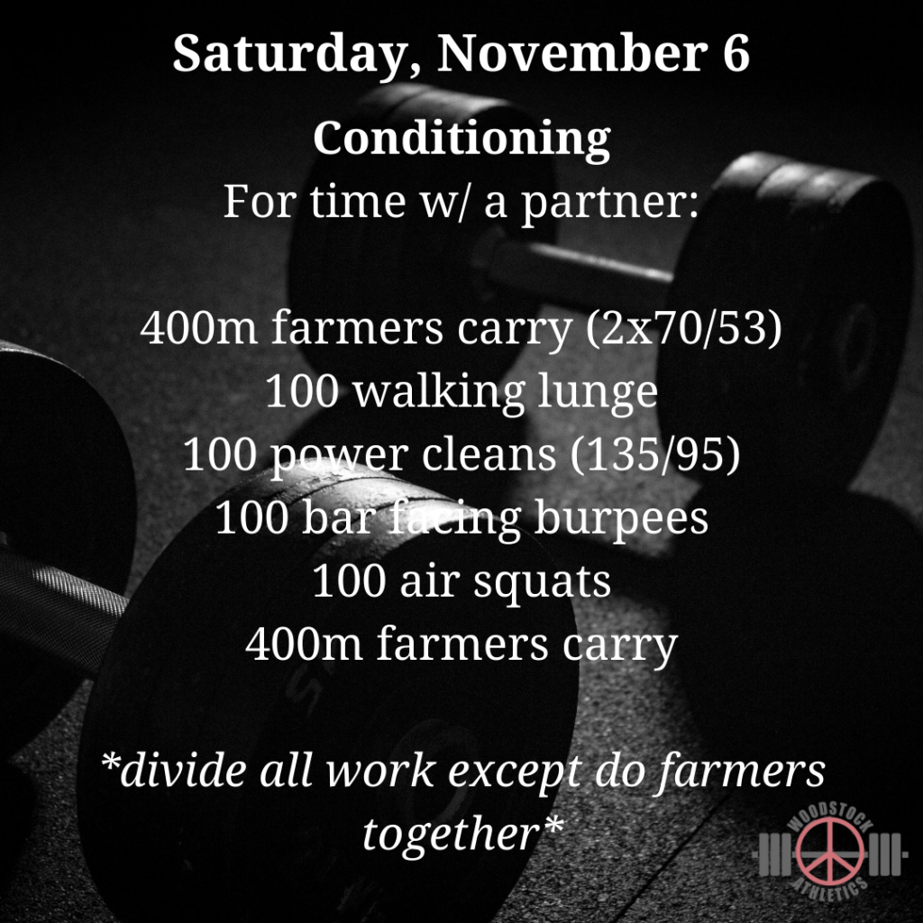 Partner WOD: Saturday, November 6 Posted bySteph VermeychukNovember 6, 2021November 1, 2021Posted inWorkout of the Day Happy Saturday! Share this: Click to share on X (Opens in new window) X Click to share on Facebook (Opens in new window) Facebook Like Loading... Related