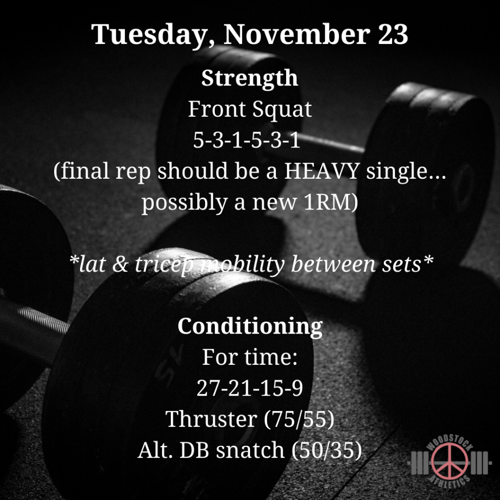WOD: Tuesday, November 23 Posted bySteph VermeychukNovember 23, 2021November 21, 2021Posted inWorkout of the Day Who’s going to PR their front squat today??? Share this: Click to share on X (Opens in new window) X Click to share on Facebook (Opens in new window) Facebook Like Loading... Related