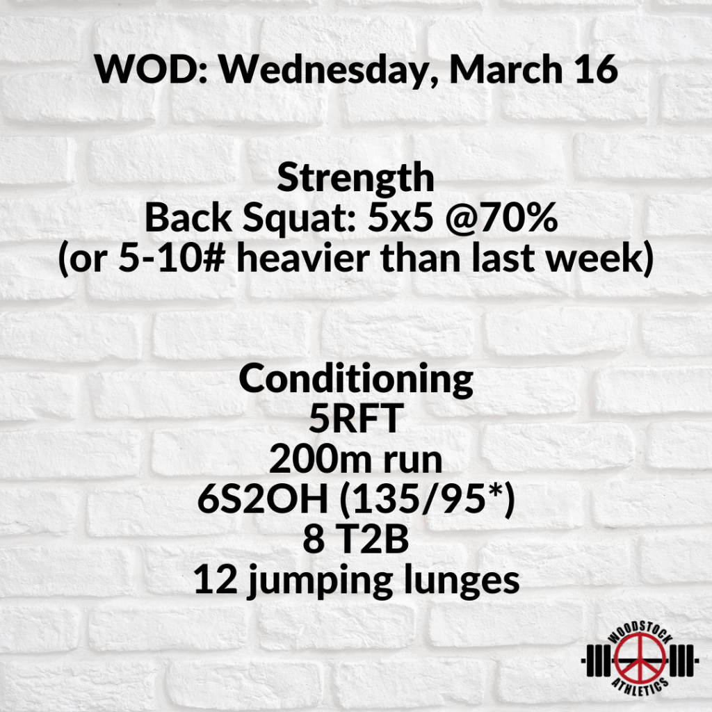WOD: Wednesday, March 16 Posted bySteph VermeychukMarch 16, 2022March 13, 2022Posted inWorkout of the Day Share this: Click to share on X (Opens in new window) X Click to share on Facebook (Opens in new window) Facebook Like Loading... Related
