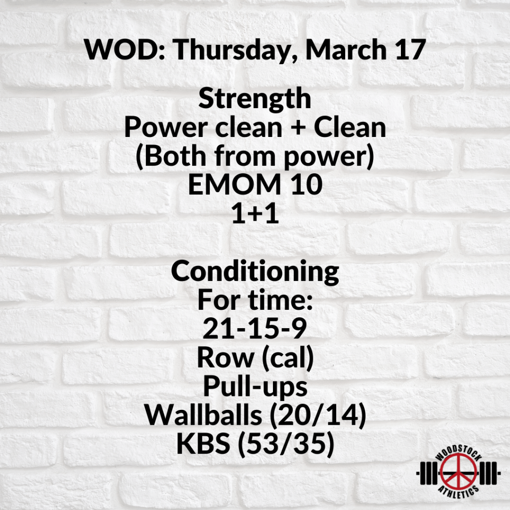 WOD: Thursday, March 17 Posted bySteph VermeychukMarch 17, 2022March 13, 2022Posted inWorkout of the Day Share this: Click to share on X (Opens in new window) X Click to share on Facebook (Opens in new window) Facebook Like Loading... Related