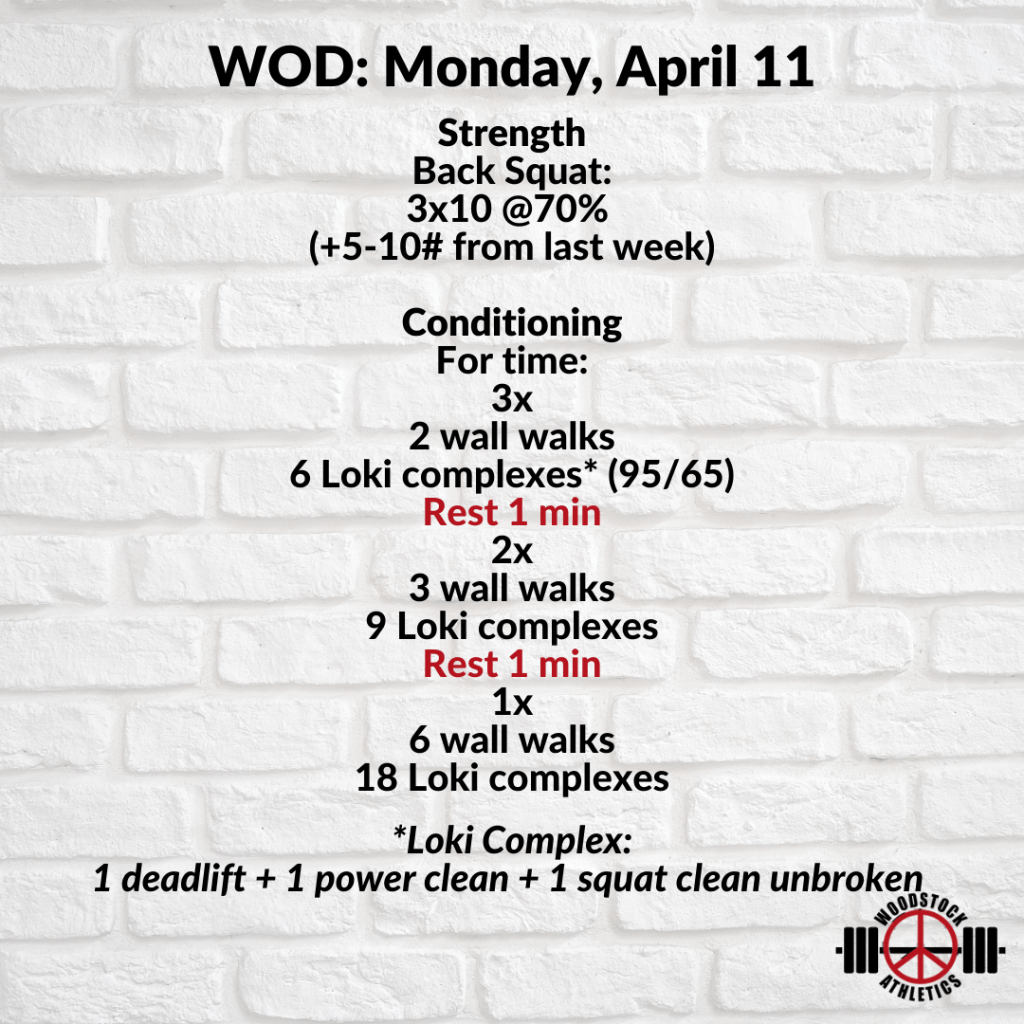 WOD: Monday, April 11 Posted bySteph VermeychukApril 11, 2022April 10, 2022Posted inWorkout of the Day Share this: Click to share on X (Opens in new window) X Click to share on Facebook (Opens in new window) Facebook Like Loading... Related