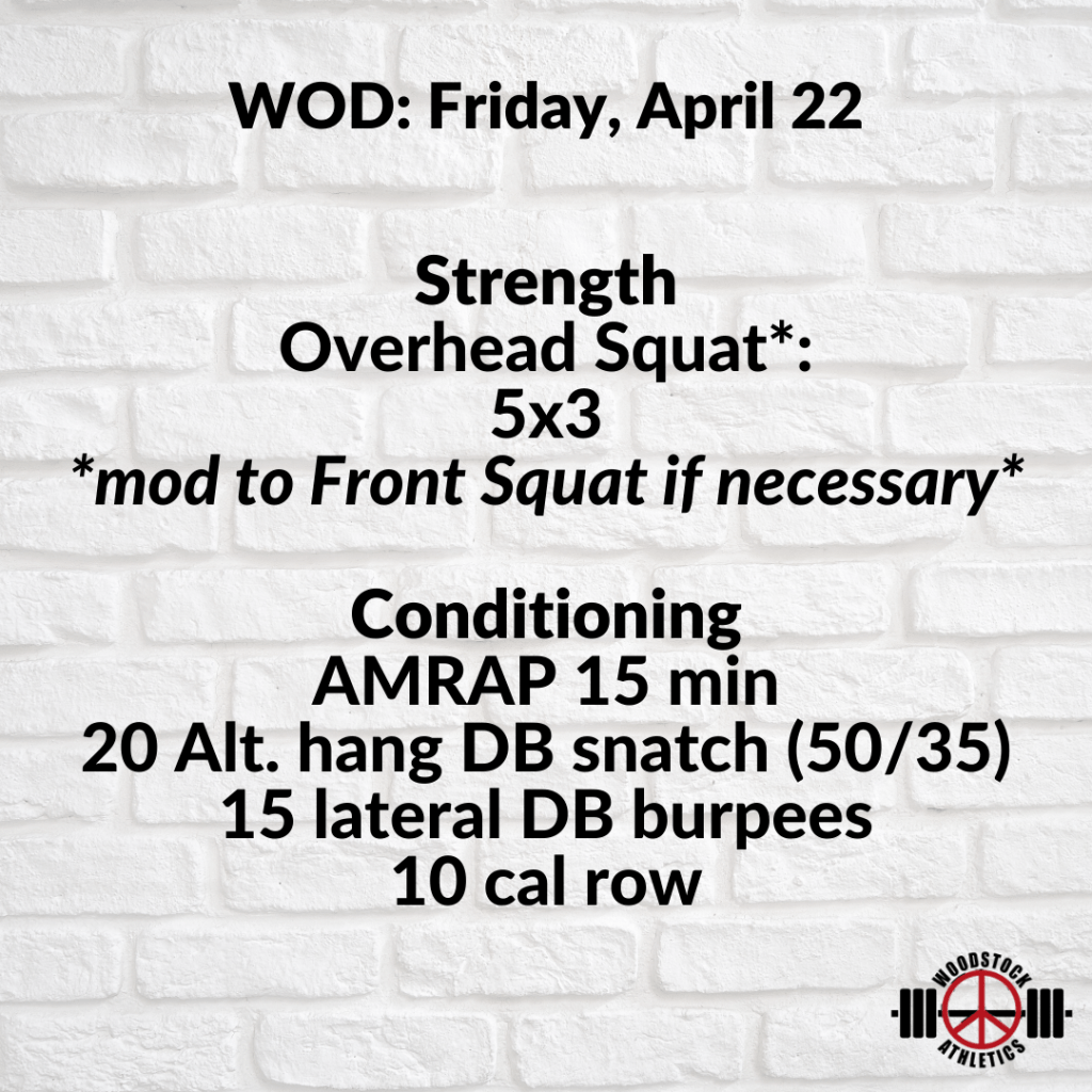 WOD: Friday, April 22 Posted bySteph VermeychukApril 22, 2022April 17, 2022Posted inWorkout of the Day Share this: Click to share on X (Opens in new window) X Click to share on Facebook (Opens in new window) Facebook Like Loading... Related