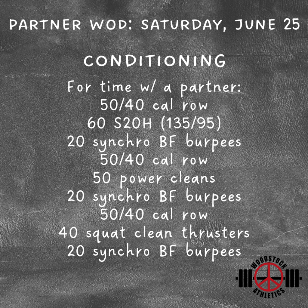 Partner WOD: Saturday, June 25 Posted bySteph VermeychukJune 25, 2022June 19, 2022Posted inWorkout of the Day Share this: Click to share on X (Opens in new window) X Click to share on Facebook (Opens in new window) Facebook Like Loading... Related