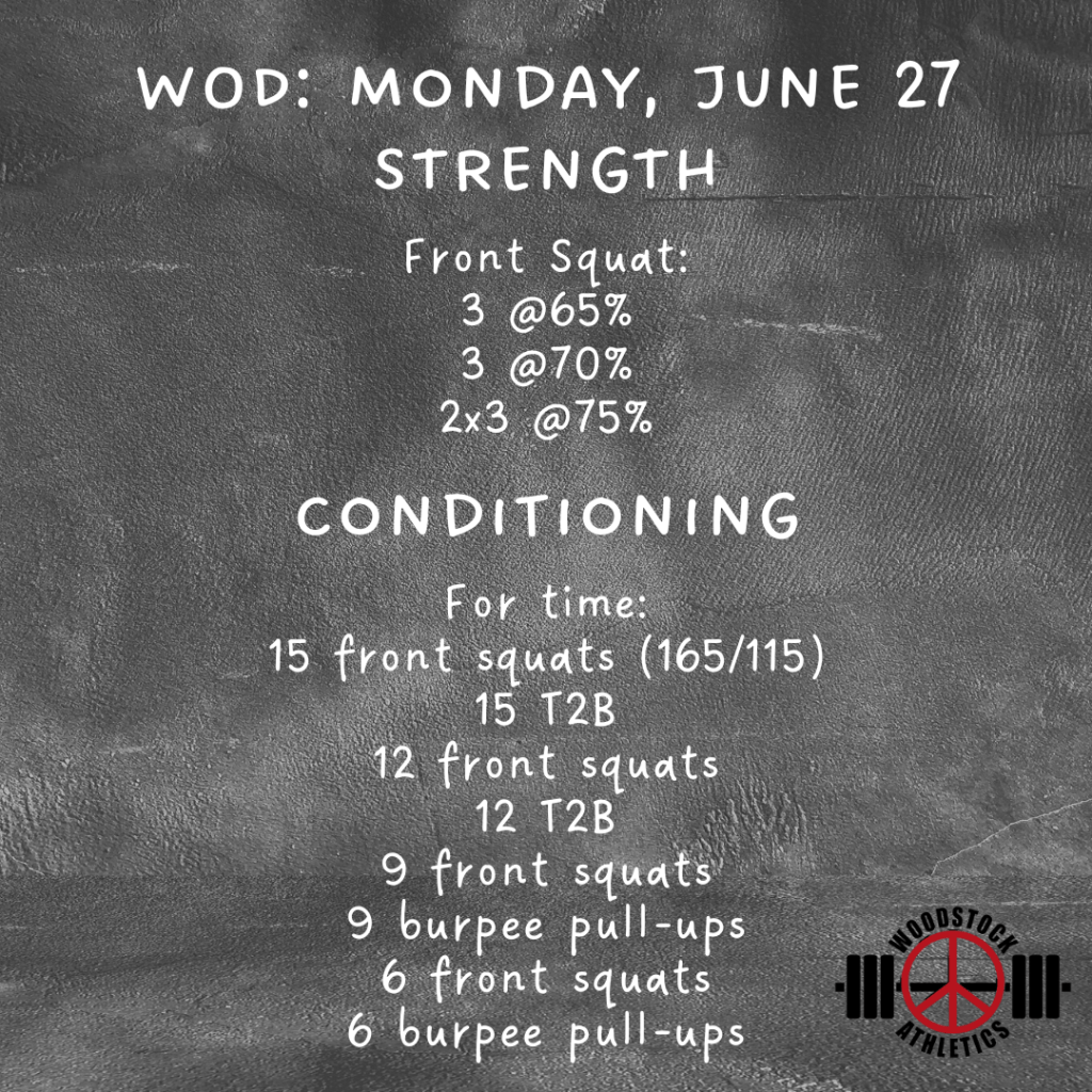 WOD: Monday, June 27 Posted bySteph VermeychukJune 27, 2022June 26, 2022Posted inWorkout of the Day Share this: Click to share on X (Opens in new window) X Click to share on Facebook (Opens in new window) Facebook Like Loading... Related