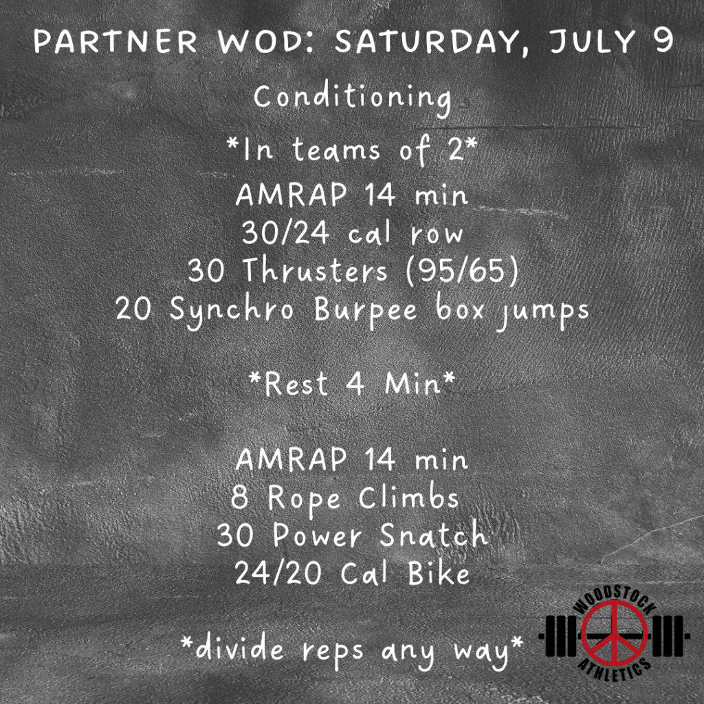 Partner WOD: Saturday, July 9 Posted bySteph VermeychukJuly 9, 2022July 4, 2022Posted inWorkout of the Day Share this: Click to share on X (Opens in new window) X Click to share on Facebook (Opens in new window) Facebook Like Loading... Related