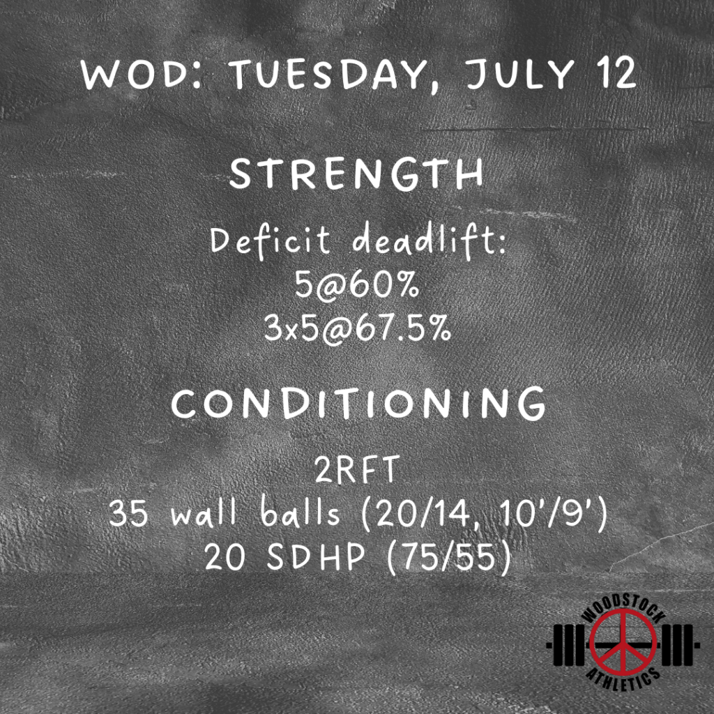 WOD: Tuesday, July 12 Posted bySteph VermeychukJuly 12, 2022July 12, 2022Posted inWorkout of the Day Share this: Click to share on X (Opens in new window) X Click to share on Facebook (Opens in new window) Facebook Like Loading... Related