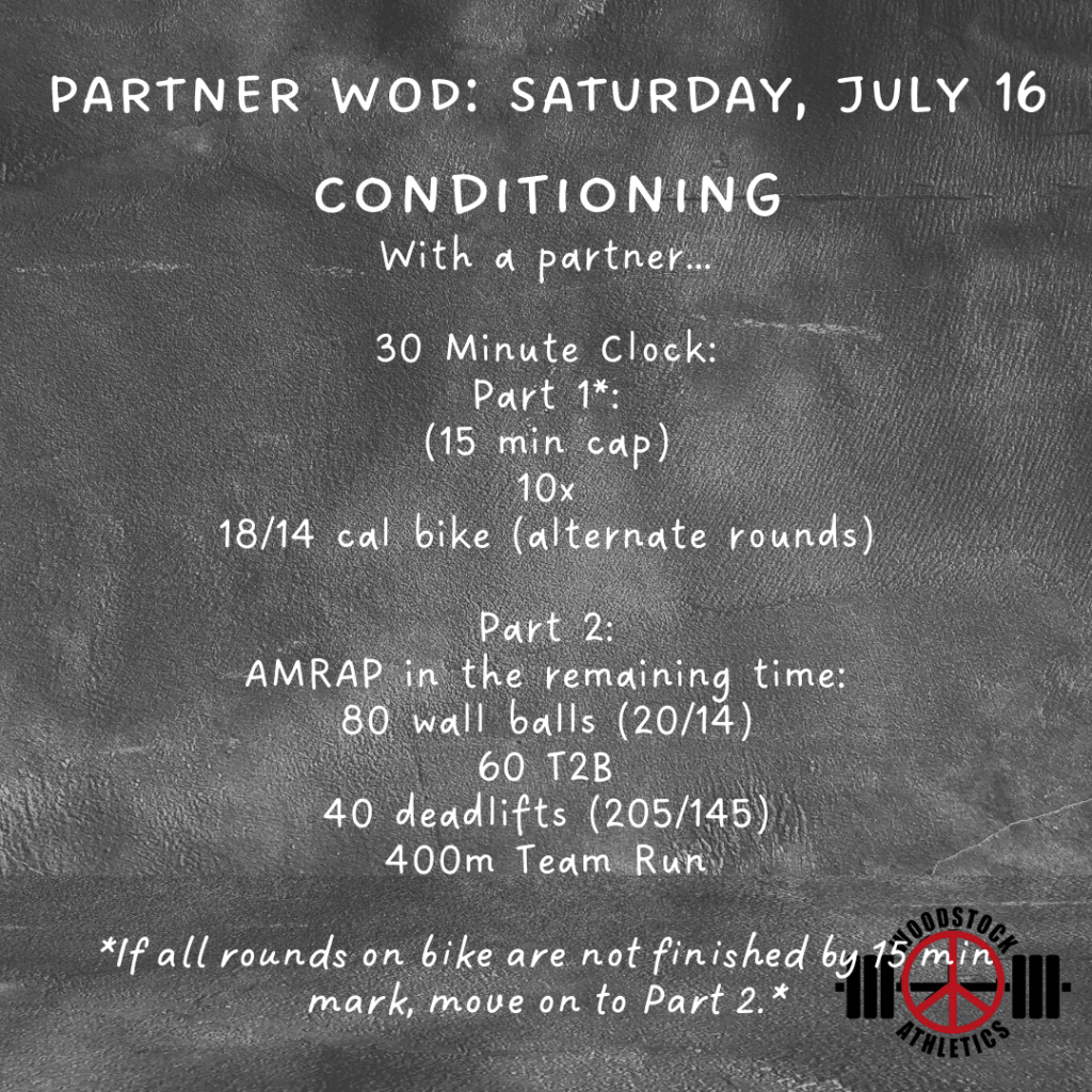 Partner WOD: Saturday, July 16 Posted bySteph VermeychukJuly 16, 2022July 12, 2022Posted inWorkout of the Day Share this: Click to share on X (Opens in new window) X Click to share on Facebook (Opens in new window) Facebook Like Loading... Related