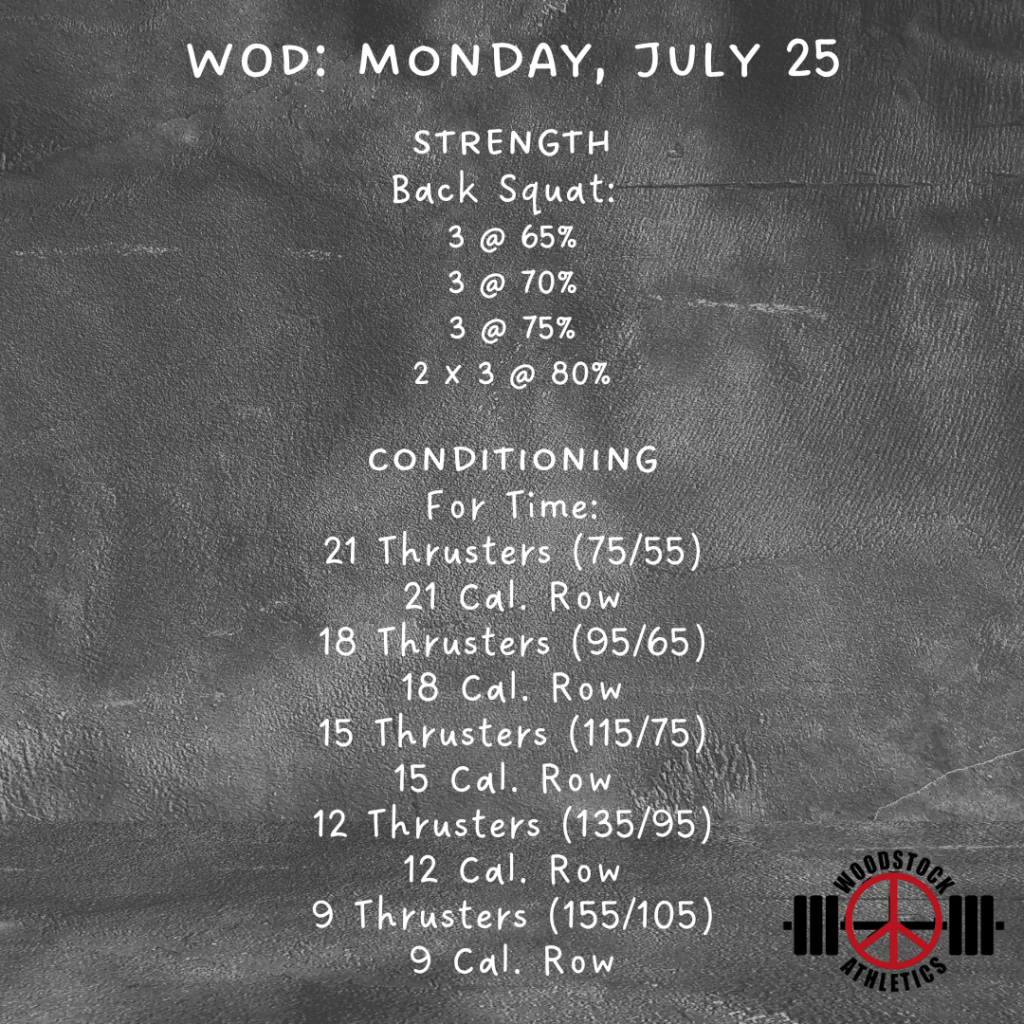 WOD: Monday, July 25 Posted bySteph VermeychukJuly 25, 2022July 24, 2022Posted inWorkout of the Day Happy Monday, team! It’s gonna be a great week! But hot… 🔥 So make sure you’re hydrating responsibly. Share this: Click to share on X (Opens in new window) X Click to share on Facebook (Opens in new window) Facebook Like Loading... Related