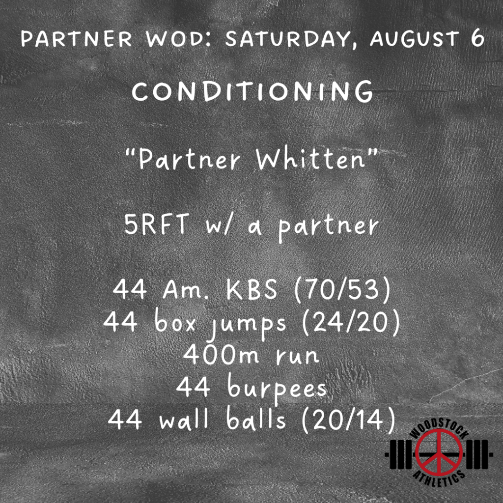 Partner WOD: Saturday, August 6 Posted bySteph VermeychukAugust 6, 2022July 31, 2022Posted inWorkout of the Day Share this: Click to share on X (Opens in new window) X Click to share on Facebook (Opens in new window) Facebook Like Loading... Related