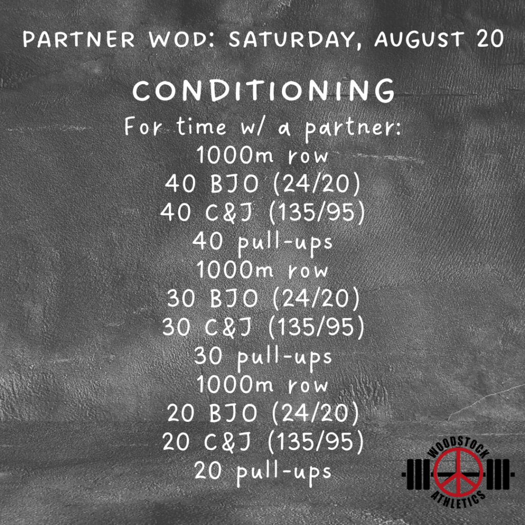 Partner WOD: Saturday, August 20 Posted bySteph VermeychukAugust 20, 2022August 14, 2022Posted inWorkout of the Day Share this: Click to share on X (Opens in new window) X Click to share on Facebook (Opens in new window) Facebook Like Loading... Related