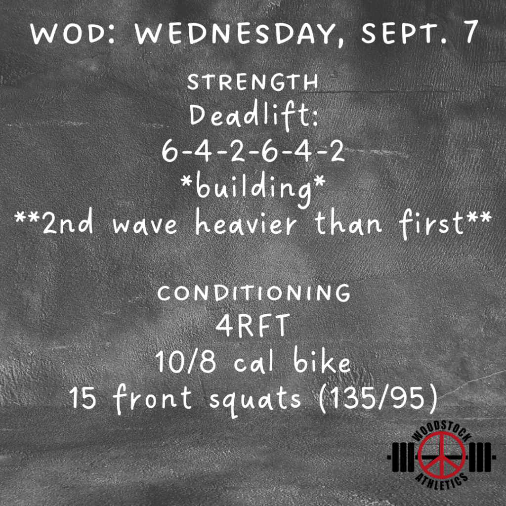 WOD: Wednesday, September 7 Posted bySteph VermeychukSeptember 7, 2022September 2, 2022Posted inWorkout of the Day Share this: Click to share on X (Opens in new window) X Click to share on Facebook (Opens in new window) Facebook Like Loading... Related