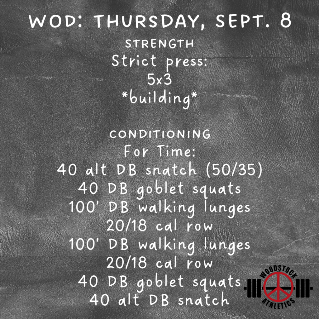 WOD: Thursday, September 8 Posted bySteph VermeychukSeptember 8, 2022September 2, 2022Posted inWorkout of the Day Share this: Click to share on X (Opens in new window) X Click to share on Facebook (Opens in new window) Facebook Like Loading... Related