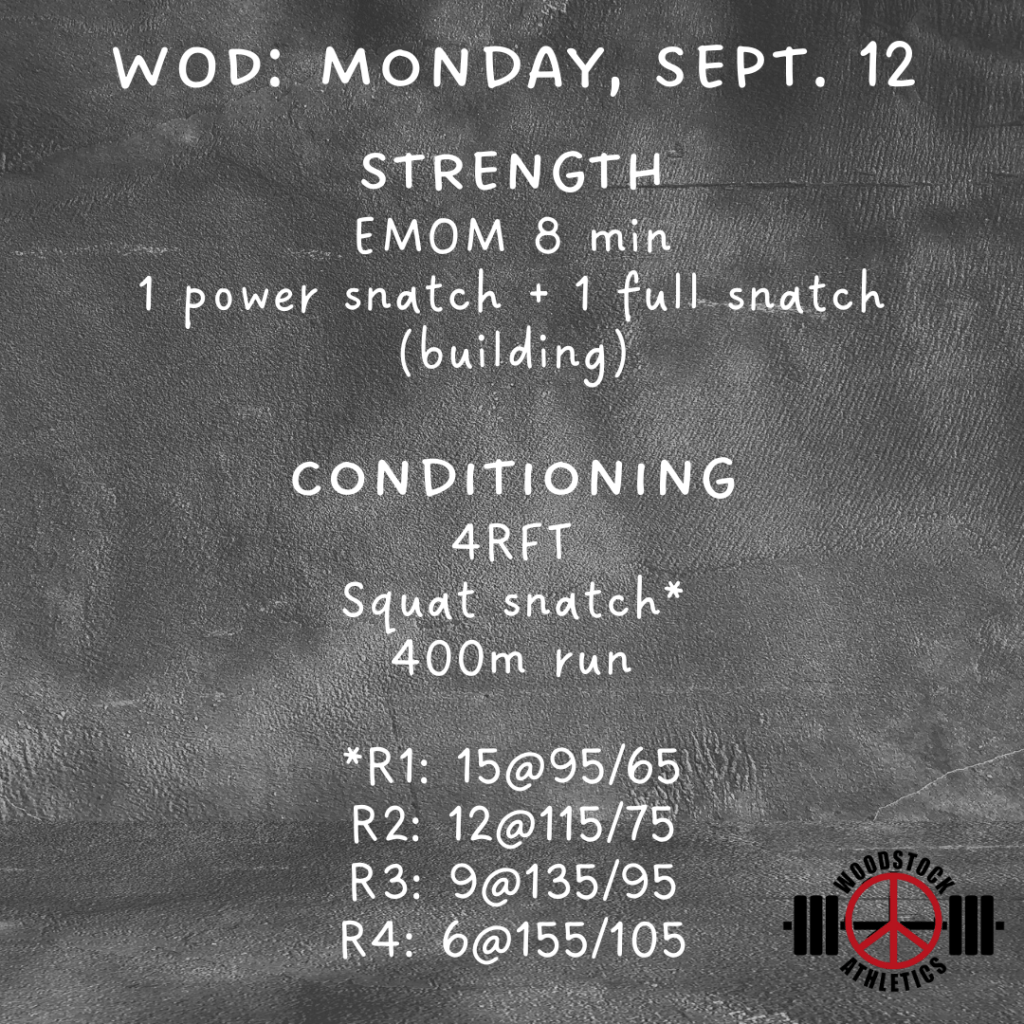 WOD: Monday, September 12 Posted bySteph VermeychukSeptember 12, 2022September 11, 2022Posted inWorkout of the Day Share this: Click to share on X (Opens in new window) X Click to share on Facebook (Opens in new window) Facebook Like Loading... Related