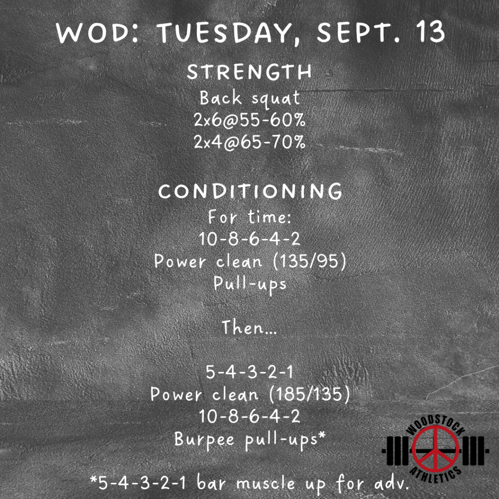 WOD: Tuesday, September 13 Posted bySteph VermeychukSeptember 13, 2022September 11, 2022Posted inWorkout of the Day Share this: Click to share on X (Opens in new window) X Click to share on Facebook (Opens in new window) Facebook Like Loading... Related