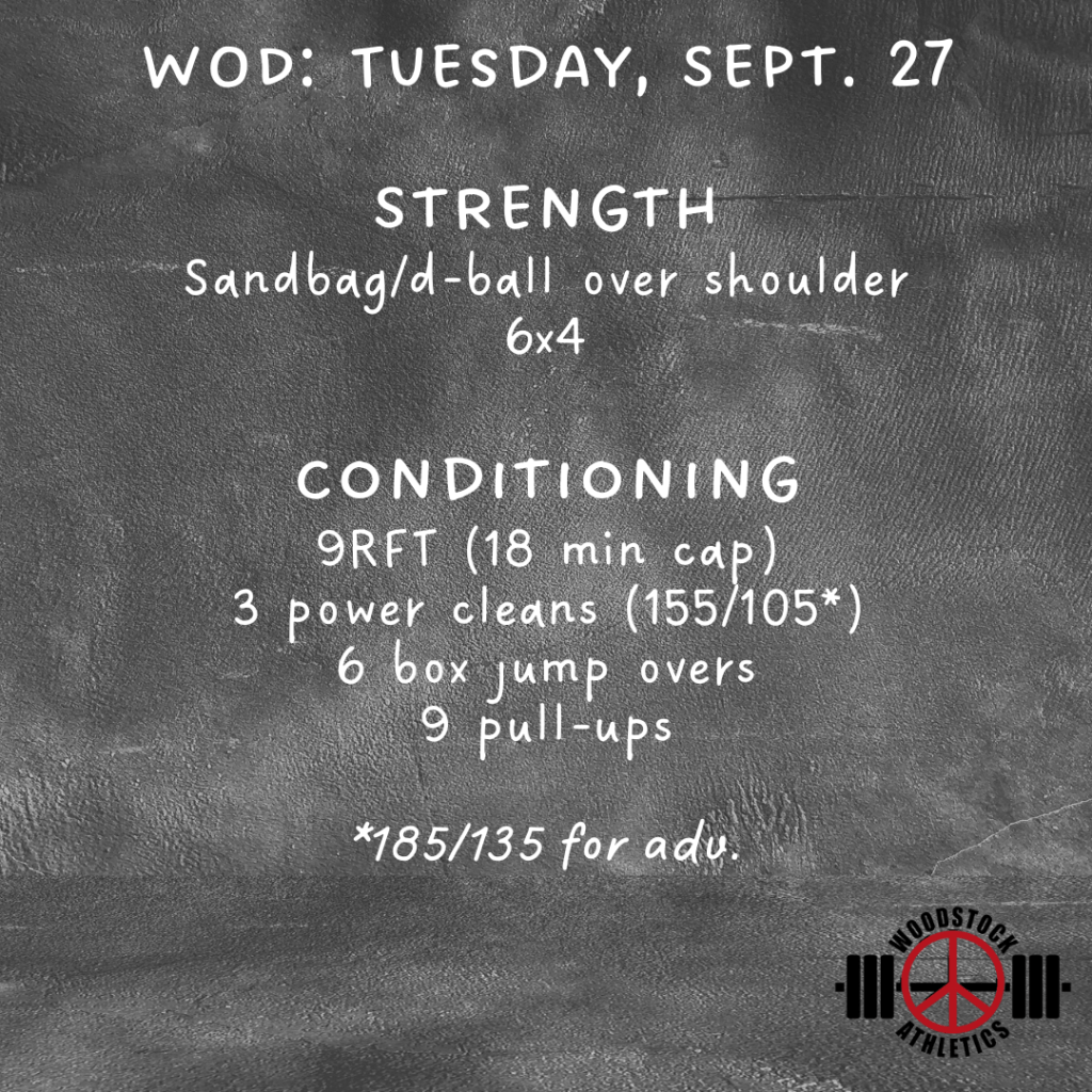 WOD: Tuesday, September 27 Posted bySteph VermeychukSeptember 27, 2022September 24, 2022Posted inWorkout of the Day Share this: Click to share on X (Opens in new window) X Click to share on Facebook (Opens in new window) Facebook Like Loading... Related