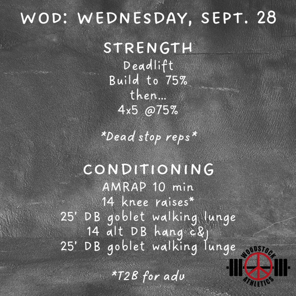 WOD: Wednesday, September 28 Posted bySteph VermeychukSeptember 28, 2022September 24, 2022Posted inWorkout of the Day Share this: Click to share on X (Opens in new window) X Click to share on Facebook (Opens in new window) Facebook Like Loading... Related