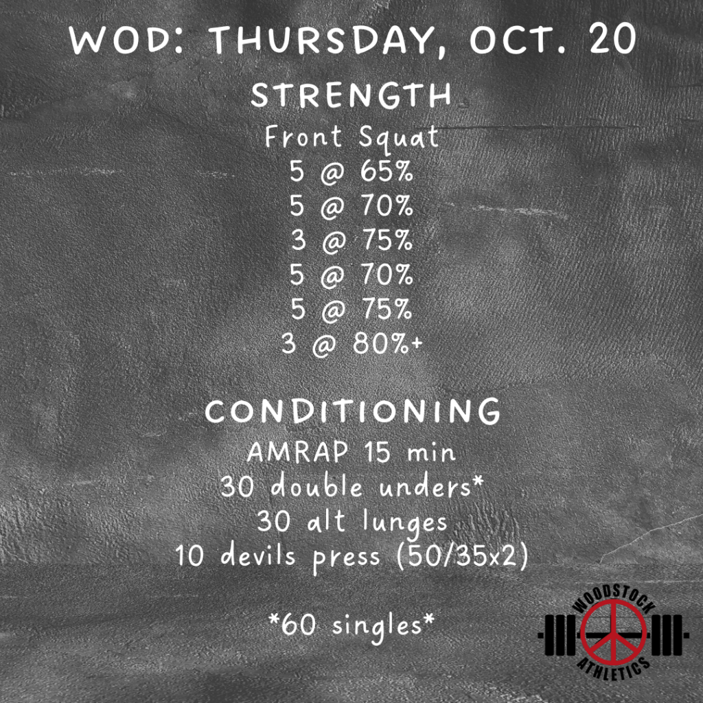 WOD: Thursday, October 20 Posted bySteph VermeychukOctober 20, 2022October 16, 2022Posted inWorkout of the Day Share this: Click to share on X (Opens in new window) X Click to share on Facebook (Opens in new window) Facebook Like Loading... Related