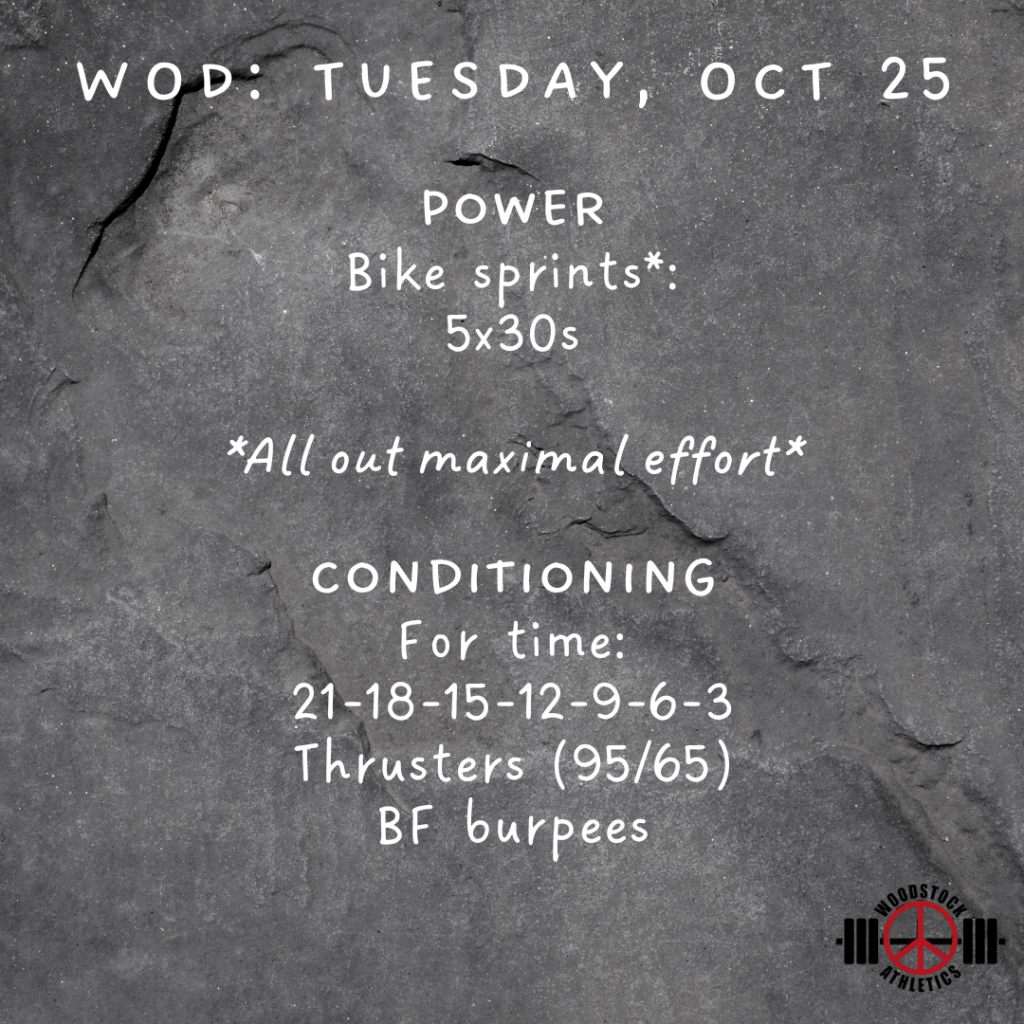 WOD: Tuesday, October 25 Posted bySteph VermeychukOctober 25, 2022October 23, 2022Posted inWorkout of the Day Share this: Click to share on X (Opens in new window) X Click to share on Facebook (Opens in new window) Facebook Like Loading... Related