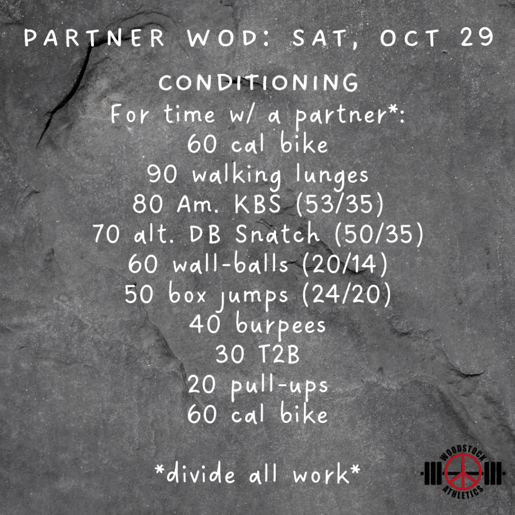 Partner WOD: Saturday, October 29 Posted bySteph VermeychukOctober 29, 2022October 23, 2022Posted inWorkout of the Day Share this: Click to share on X (Opens in new window) X Click to share on Facebook (Opens in new window) Facebook Like Loading... Related