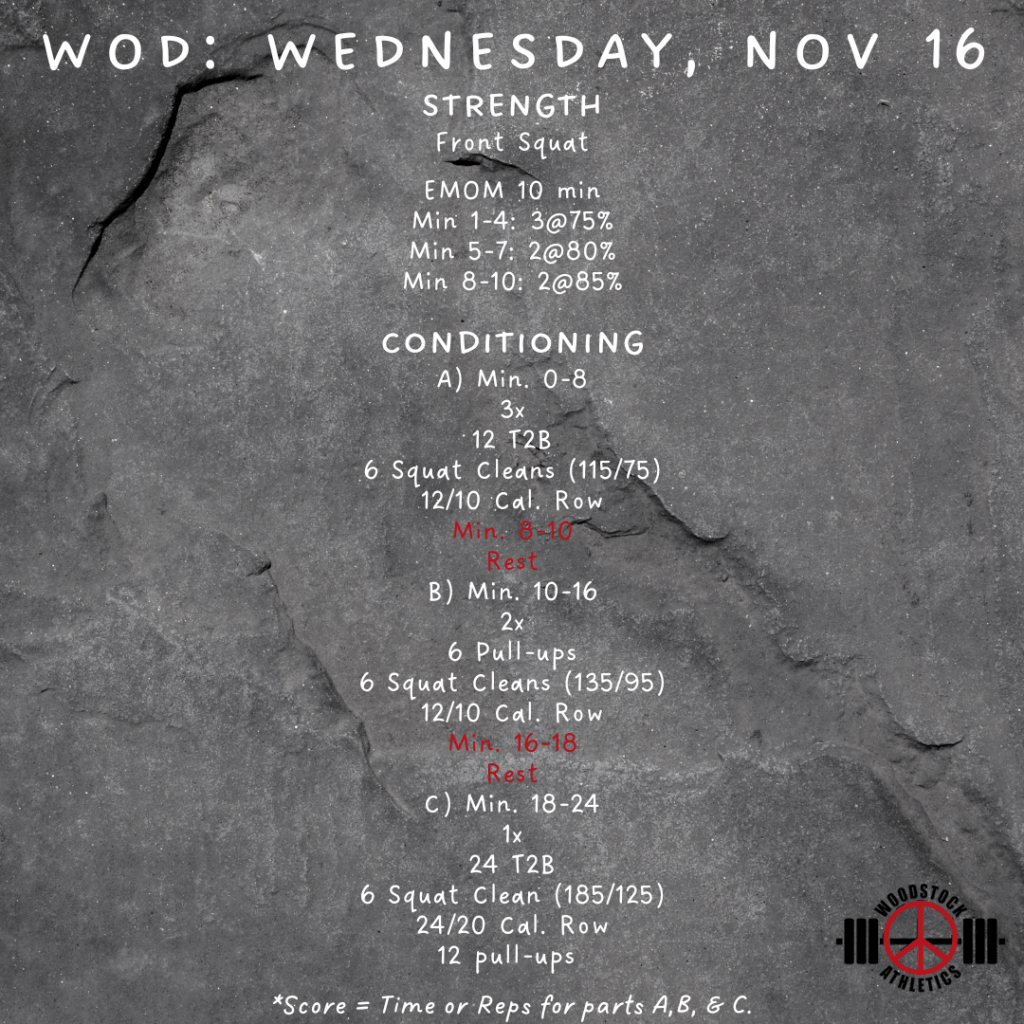 WOD: Wednesday, November 16 Posted bySteph VermeychukNovember 16, 2022November 6, 2022Posted inWorkout of the Day Share this: Click to share on X (Opens in new window) X Click to share on Facebook (Opens in new window) Facebook Like Loading... Related