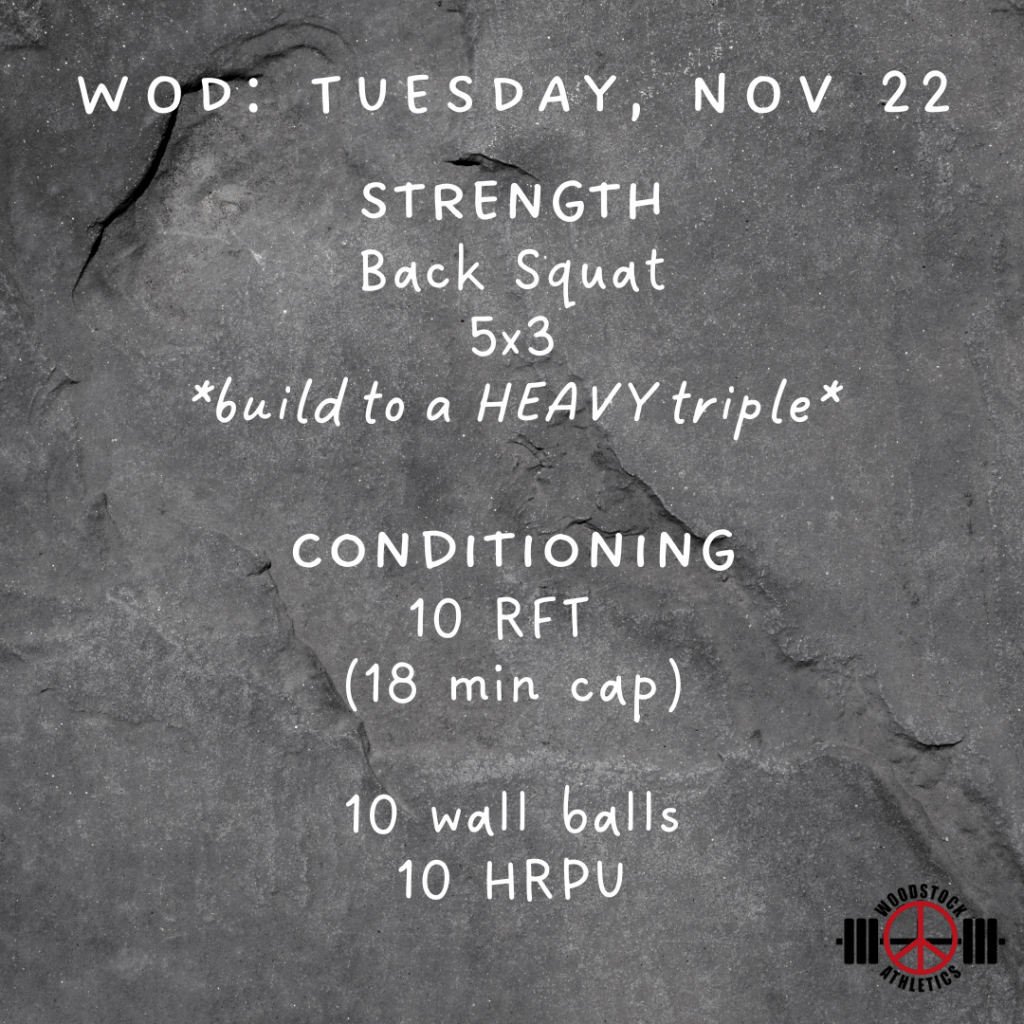 WOD: Tuesday, November 22 Posted bySteph VermeychukNovember 22, 2022Posted inWorkout of the Day Share this: Click to share on X (Opens in new window) X Click to share on Facebook (Opens in new window) Facebook Like Loading... Related