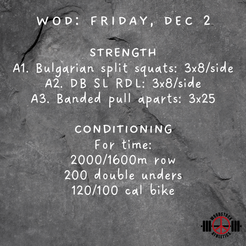 WOD: Friday, December 2 Posted bySteph VermeychukDecember 2, 2022November 27, 2022Posted inWorkout of the Day Share this: Click to share on X (Opens in new window) X Click to share on Facebook (Opens in new window) Facebook Like Loading... Related