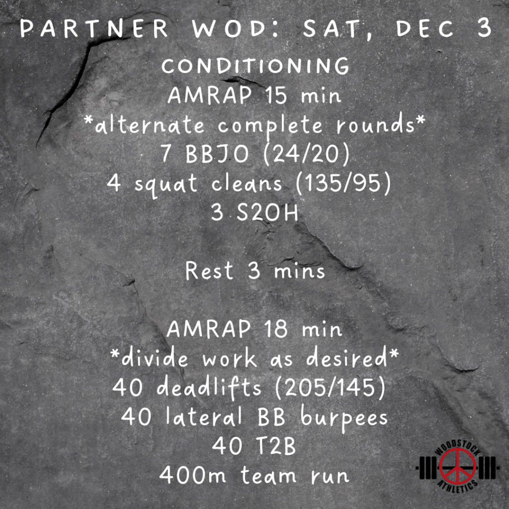 Partner WOD: Saturday, December 3 Posted bySteph VermeychukDecember 3, 2022November 27, 2022Posted inWorkout of the Day Share this: Click to share on X (Opens in new window) X Click to share on Facebook (Opens in new window) Facebook Like Loading... Related