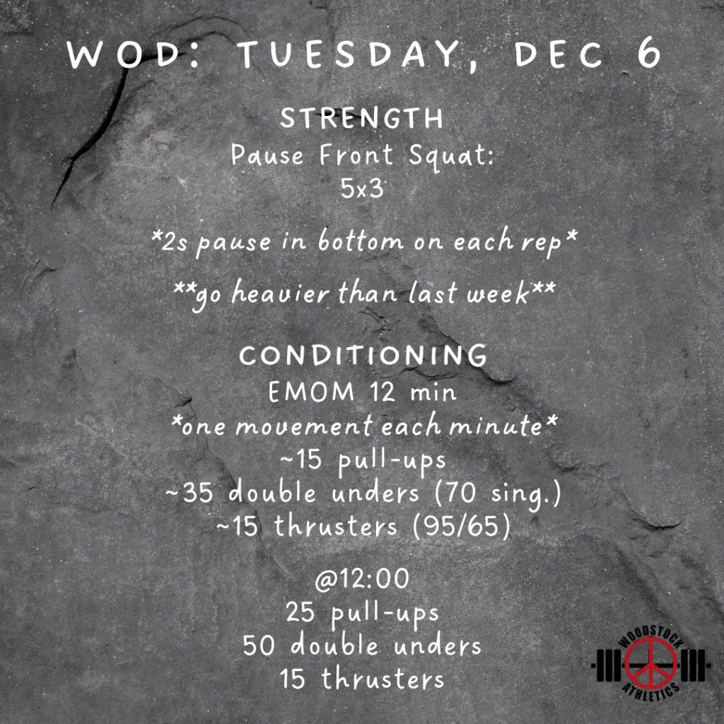 WOD: Tuesday, December 6 Posted bySteph VermeychukDecember 6, 2022December 4, 2022Posted inWorkout of the Day Share this: Click to share on X (Opens in new window) X Click to share on Facebook (Opens in new window) Facebook Like Loading... Related