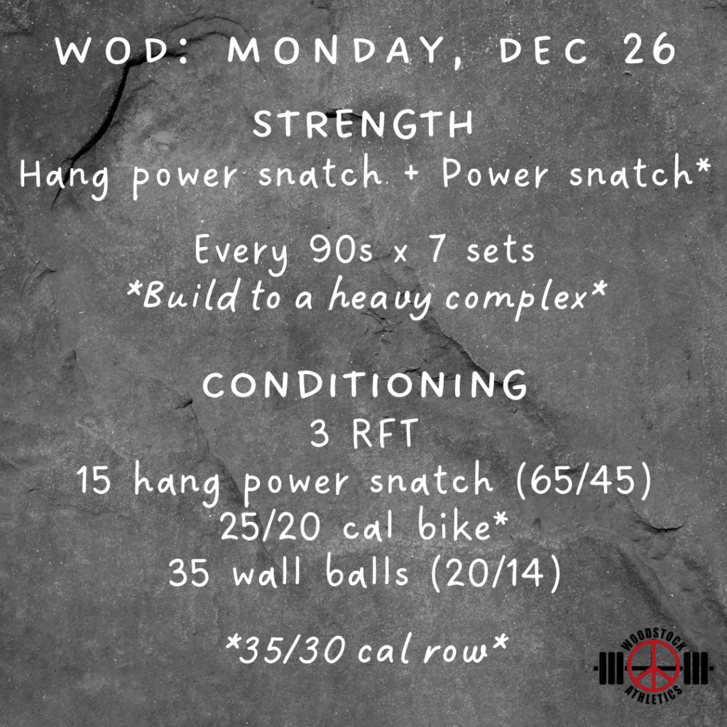WOD: Monday, December 26 Posted bySteph VermeychukDecember 26, 2022December 24, 2022Posted inWorkout of the Day Share this: Click to share on X (Opens in new window) X Click to share on Facebook (Opens in new window) Facebook Like Loading... Related