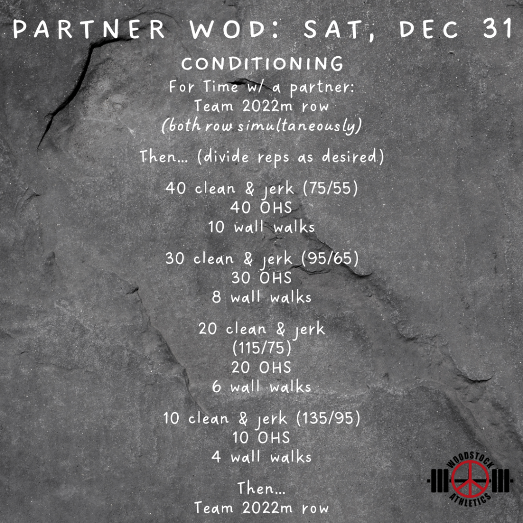 Partner WOD: Saturday, December 31 Posted bySteph VermeychukDecember 31, 2022December 24, 2022Posted inWorkout of the Day Share this: Click to share on X (Opens in new window) X Click to share on Facebook (Opens in new window) Facebook Like Loading... Related