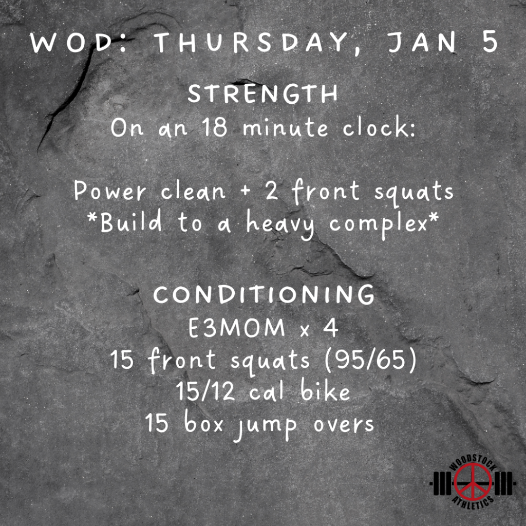WOD: Thursday, January 5 Posted bySteph VermeychukJanuary 5, 2023January 1, 2023Posted inWorkout of the Day Share this: Click to share on X (Opens in new window) X Click to share on Facebook (Opens in new window) Facebook Like Loading... Related