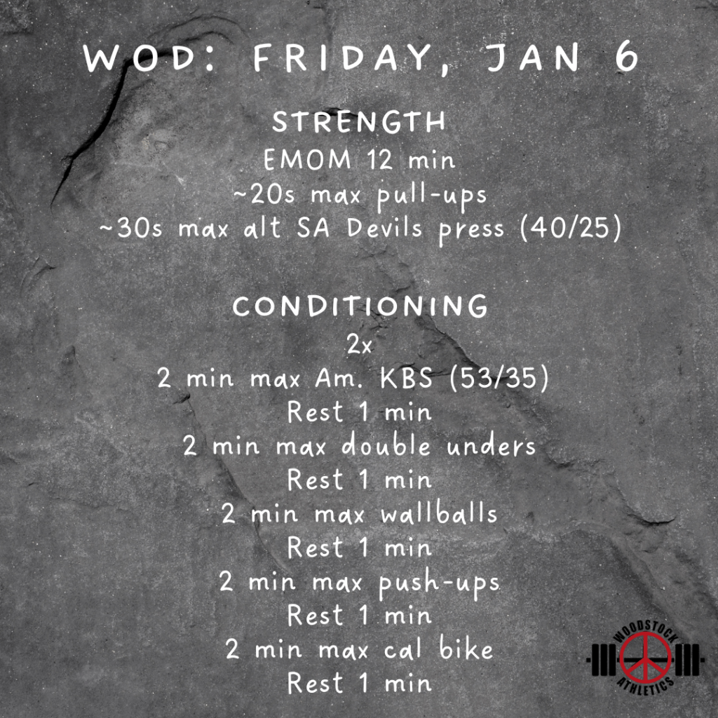 WOD: Friday, January 6 Posted bySteph VermeychukJanuary 6, 2023January 1, 2023Posted inWorkout of the Day Share this: Click to share on X (Opens in new window) X Click to share on Facebook (Opens in new window) Facebook Like Loading... Related