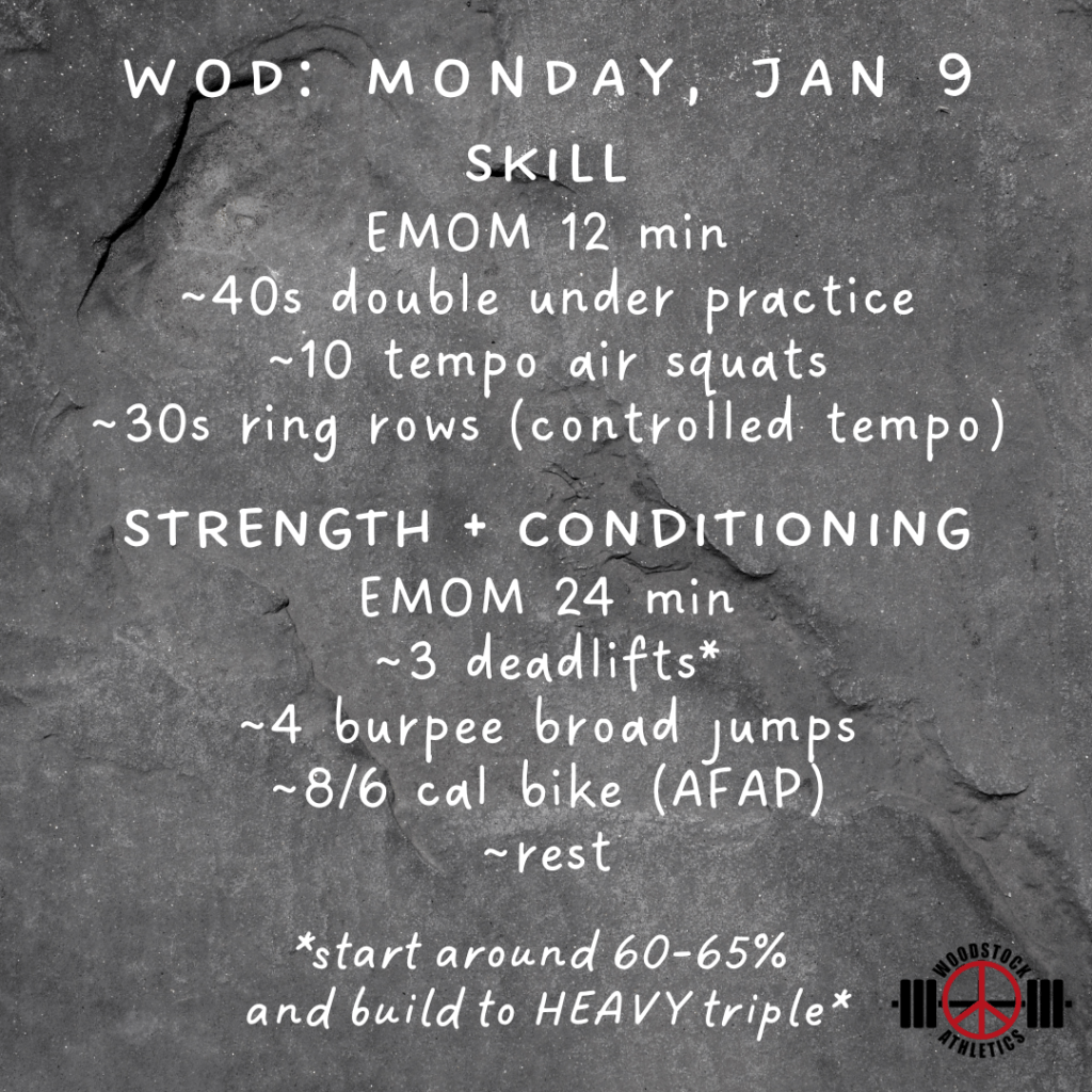 WOD: Monday, January 9 Posted bySteph VermeychukJanuary 9, 2023January 7, 2023Posted inWorkout of the Day Share this: Click to share on X (Opens in new window) X Click to share on Facebook (Opens in new window) Facebook Like Loading... Related