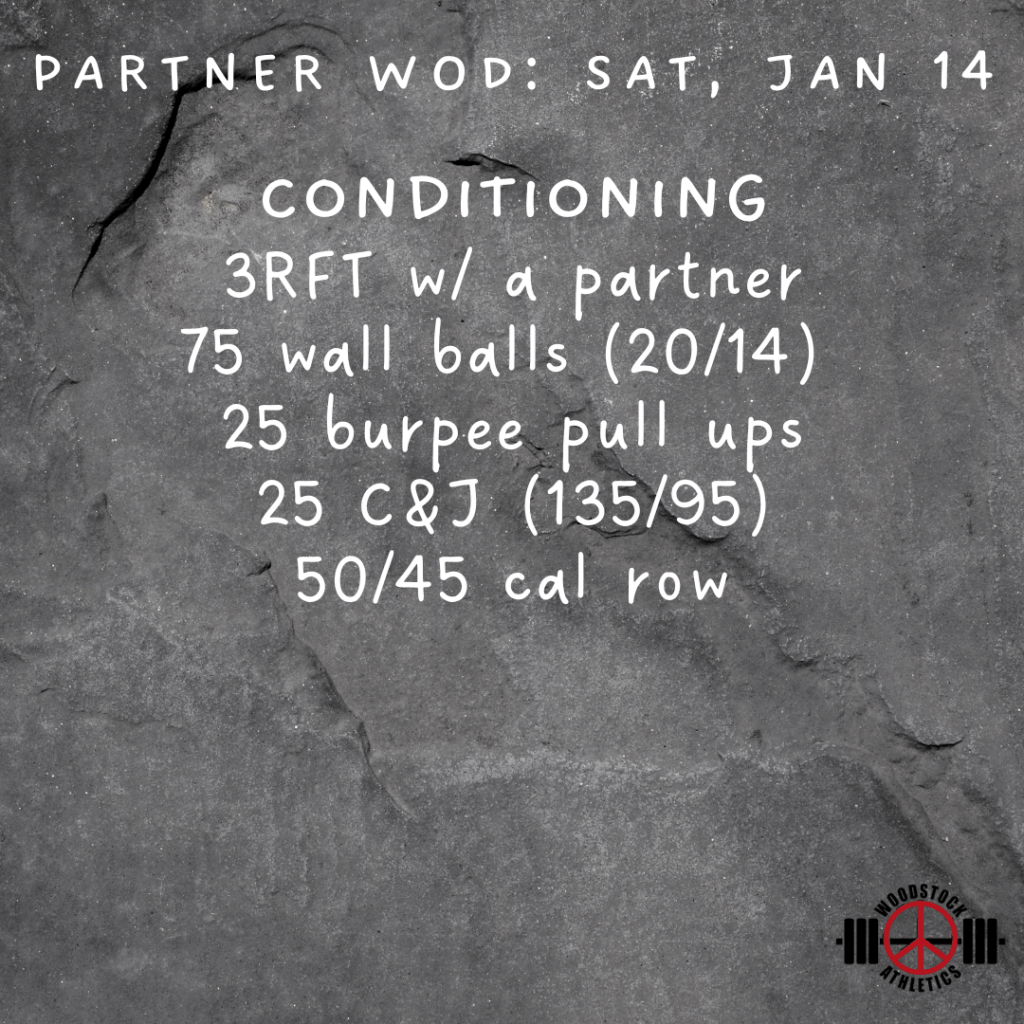 Partner WOD: Saturday, January 14 Posted bySteph VermeychukJanuary 14, 2023January 7, 2023Posted inWorkout of the Day Share this: Click to share on X (Opens in new window) X Click to share on Facebook (Opens in new window) Facebook Like Loading... Related