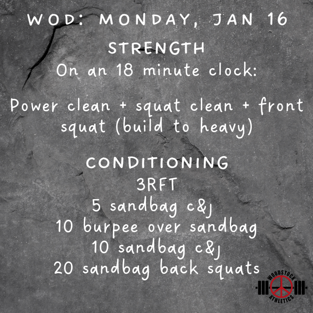 WOD: Monday, January 16 Posted bySteph VermeychukJanuary 16, 2023January 15, 2023Posted inWorkout of the Day Share this: Click to share on X (Opens in new window) X Click to share on Facebook (Opens in new window) Facebook Like Loading... Related
