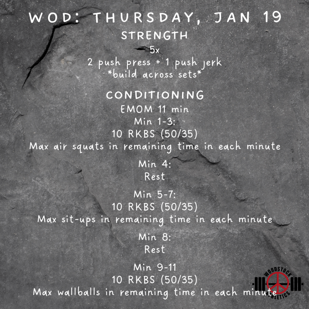 WOD: Thursday, January 19 Posted bySteph VermeychukJanuary 19, 2023January 15, 2023Posted inWorkout of the Day Share this: Click to share on X (Opens in new window) X Click to share on Facebook (Opens in new window) Facebook Like Loading... Related
