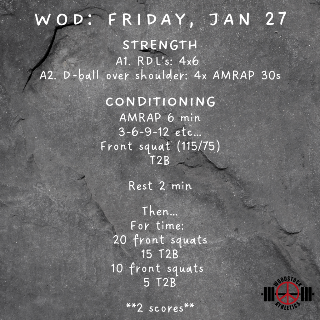 WOD: Friday, January 27 Posted bySteph VermeychukJanuary 27, 2023January 22, 2023Posted inWorkout of the Day Share this: Click to share on X (Opens in new window) X Click to share on Facebook (Opens in new window) Facebook Like Loading... Related