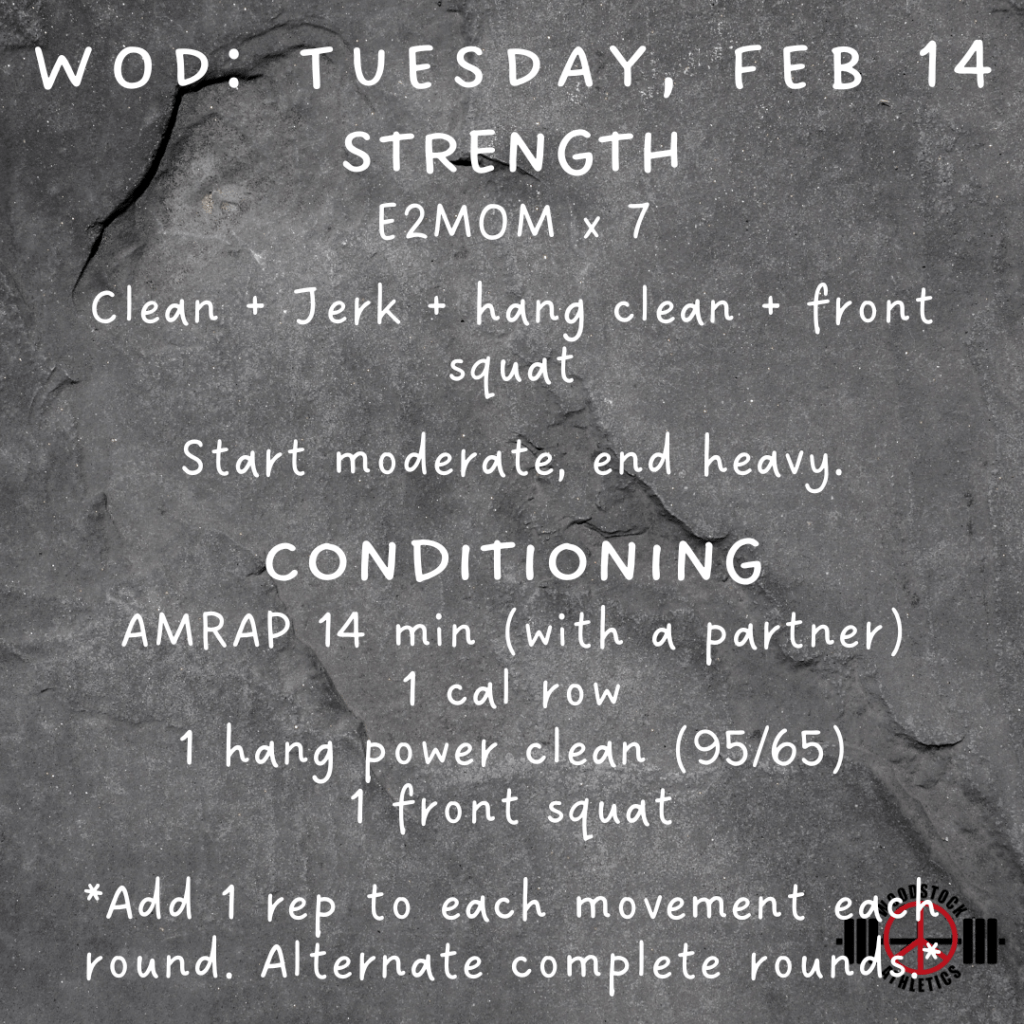 WOD: Tuesday, February 14 Posted bySteph VermeychukFebruary 14, 2023February 12, 2023Posted inWorkout of the Day Share this: Click to share on X (Opens in new window) X Click to share on Facebook (Opens in new window) Facebook Like Loading... Related