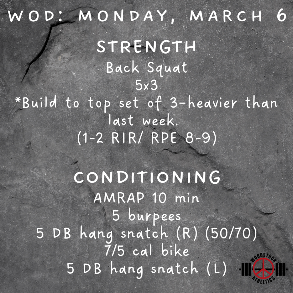 WOD: Monday, March 6 Posted bySteph VermeychukMarch 6, 2023March 5, 2023Posted inWorkout of the Day Share this: Click to share on X (Opens in new window) X Click to share on Facebook (Opens in new window) Facebook Like Loading... Related