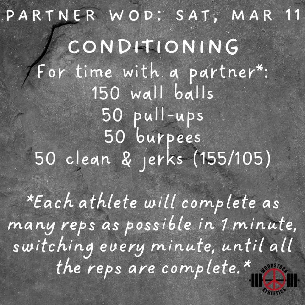 Partner WOD: Saturday, March 11 Posted bySteph VermeychukMarch 11, 2023March 5, 2023Posted inWorkout of the Day Share this: Click to share on X (Opens in new window) X Click to share on Facebook (Opens in new window) Facebook Like Loading... Related