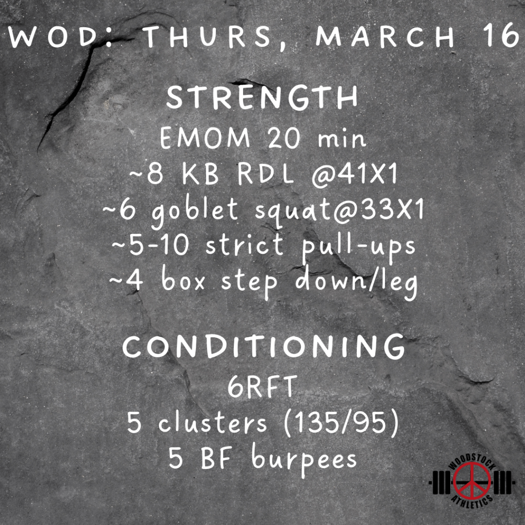 WOD: Thursday, March 16 Posted bySteph VermeychukMarch 16, 2023March 12, 2023Posted inWorkout of the Day Share this: Click to share on X (Opens in new window) X Click to share on Facebook (Opens in new window) Facebook Like Loading... Related