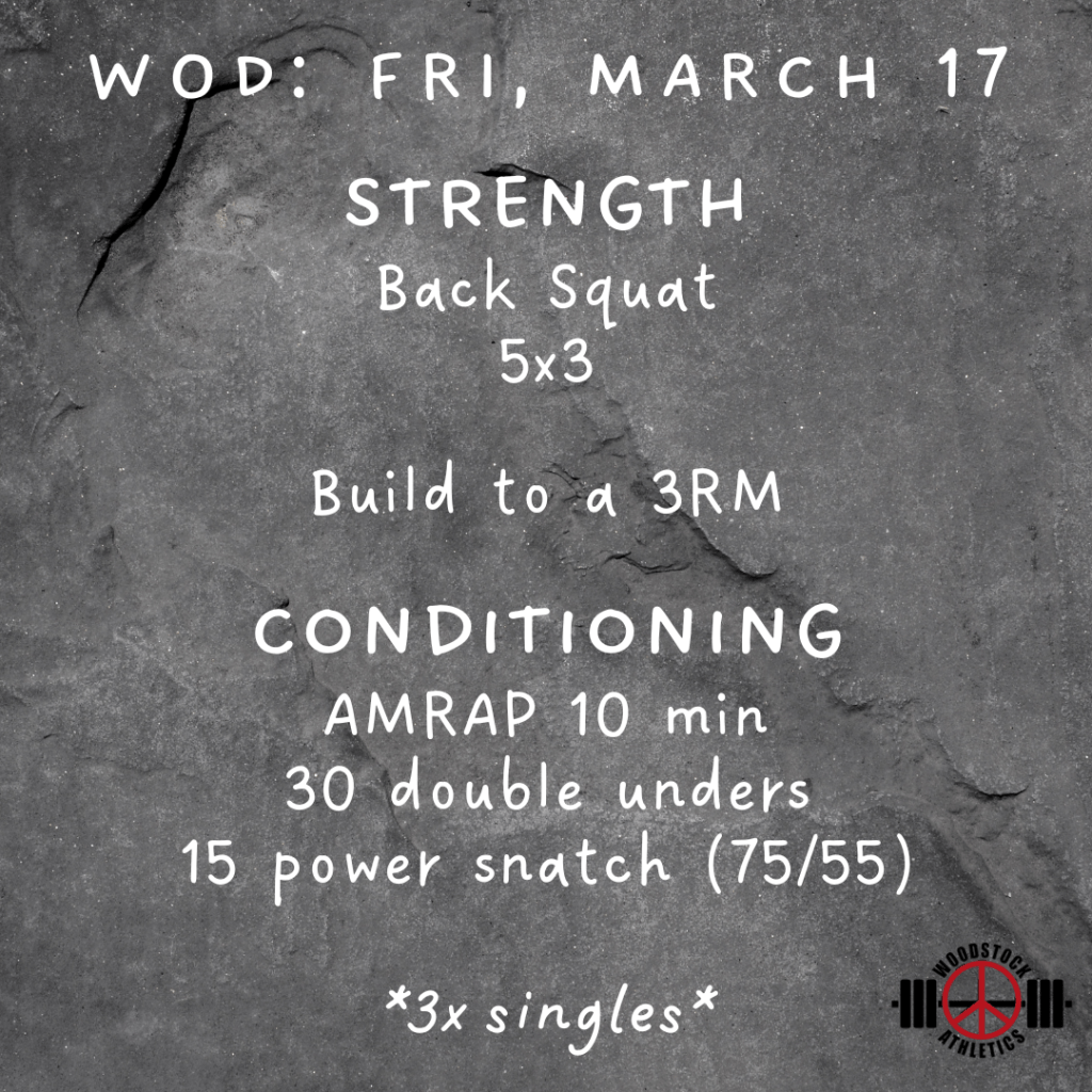 WOD: Friday, March 17 Posted bySteph VermeychukMarch 17, 2023March 12, 2023Posted inWorkout of the Day Share this: Click to share on X (Opens in new window) X Click to share on Facebook (Opens in new window) Facebook Like Loading... Related