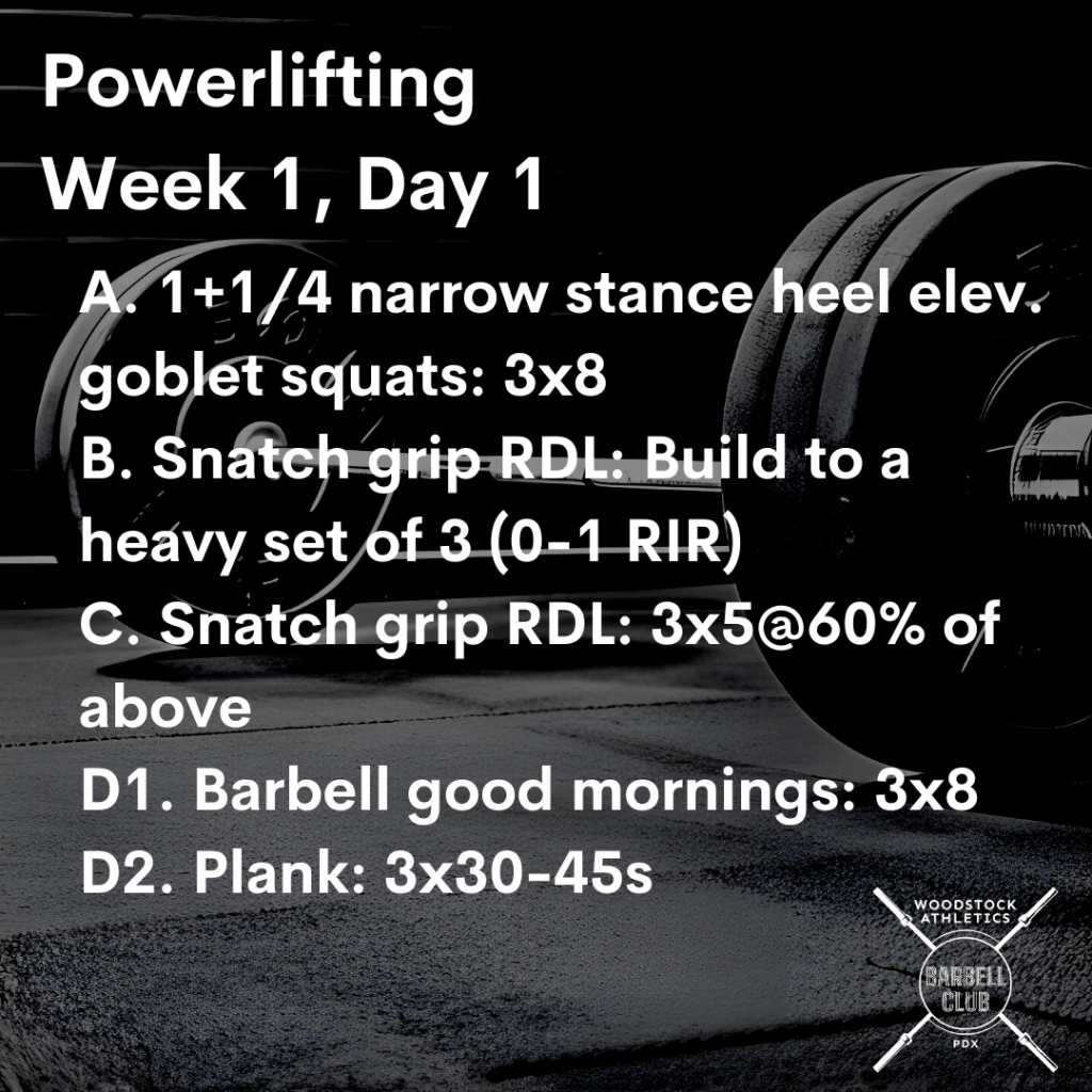 This next cycle will be 9 weeks long, and both Powerlifting and Weightlifting will now have 4 workouts each week.