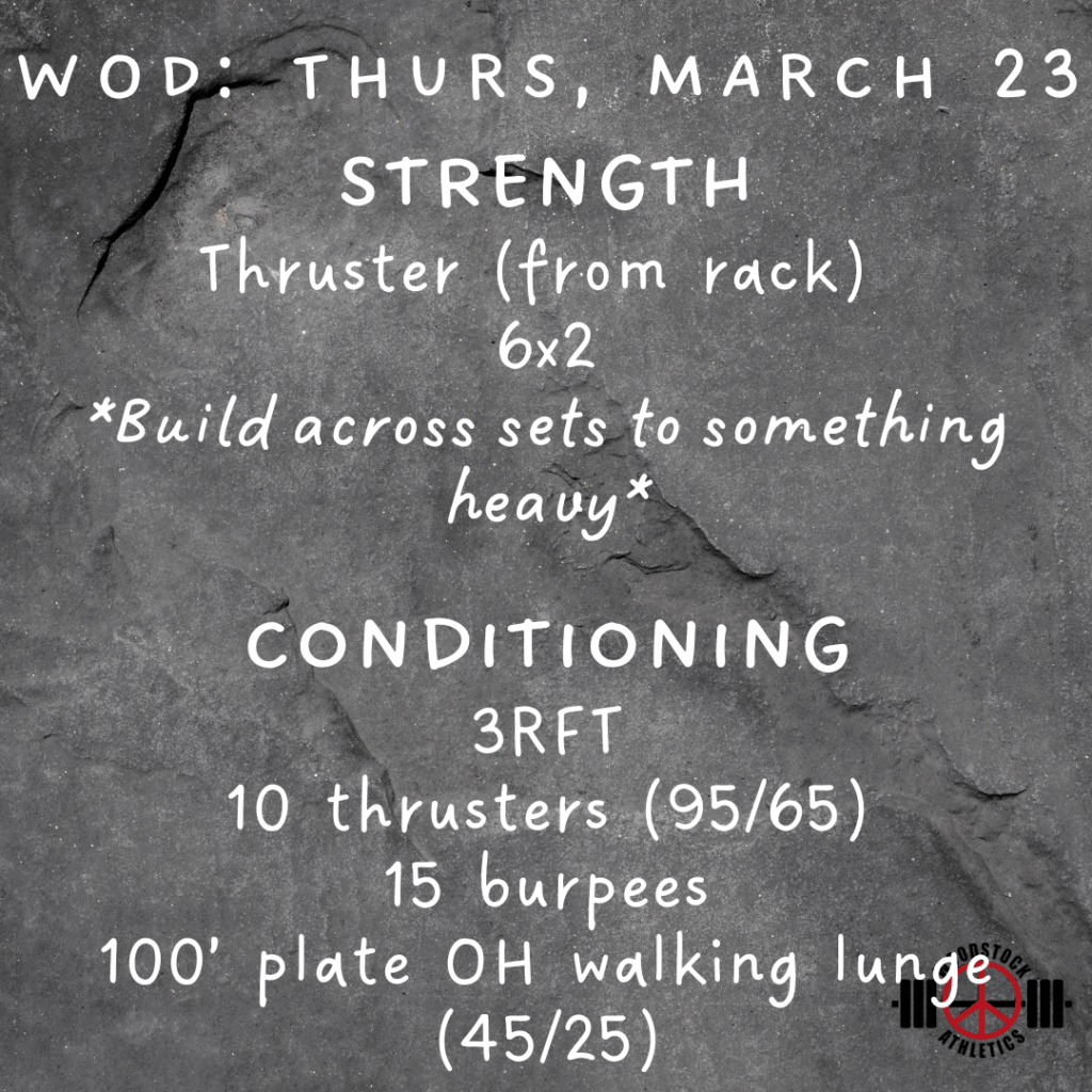 WOD & Barbell Club: Thursday, March 23 Posted bySteph VermeychukMarch 23, 2023March 19, 2023Posted inWorkout of the Day Share this: Click to share on X (Opens in new window) X Click to share on Facebook (Opens in new window) Facebook Like Loading... Related