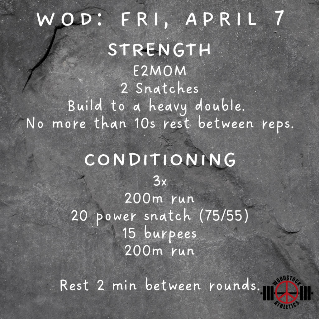 Friday, April 7: WOD Posted bySteph VermeychukApril 7, 2023April 1, 2023Posted inWorkout of the Day Share this: Click to share on X (Opens in new window) X Click to share on Facebook (Opens in new window) Facebook Like Loading... Related